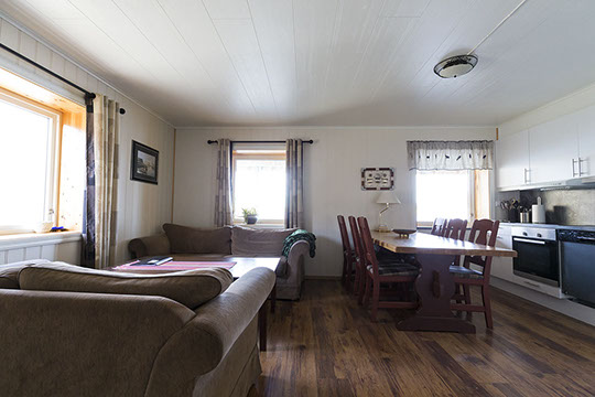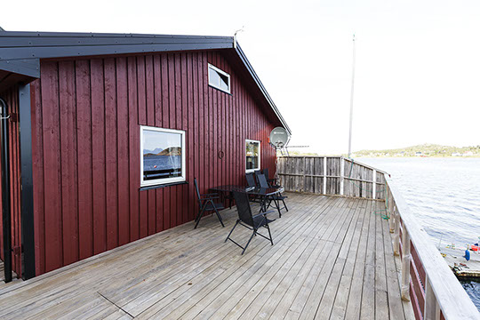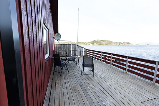 Zum Erholen ist die riesige Terrasse mit Blick auf die Lofotwand bestens geeignet.